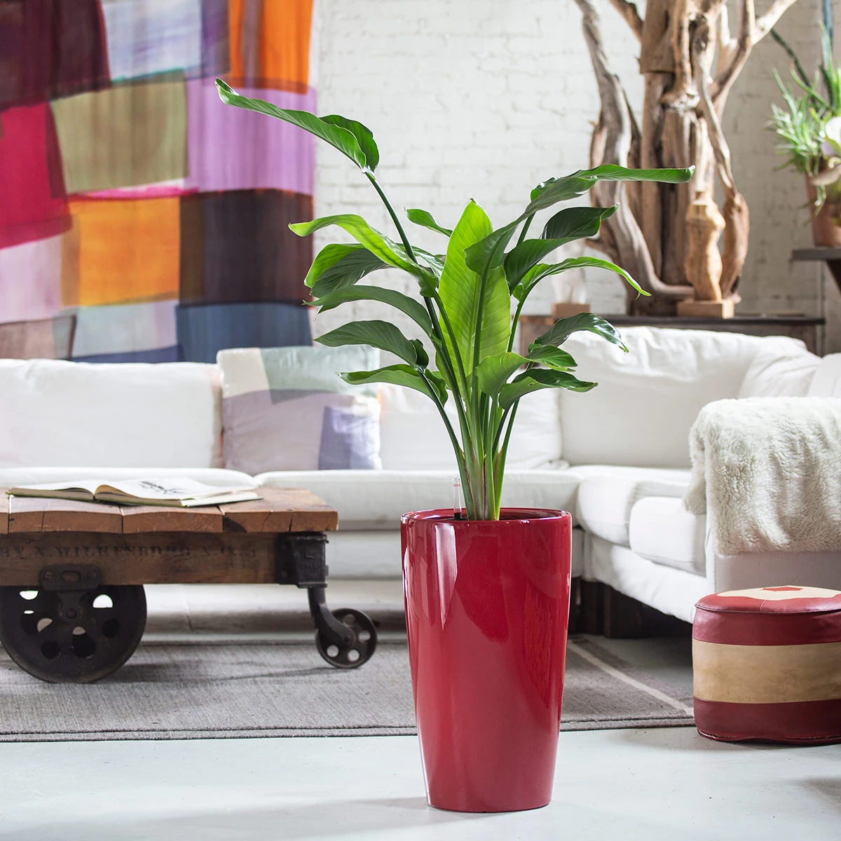 Bird of Paradise plant is potted in a modern medium height planter. Add an exotic touch to your space with this elegant indoor plant.