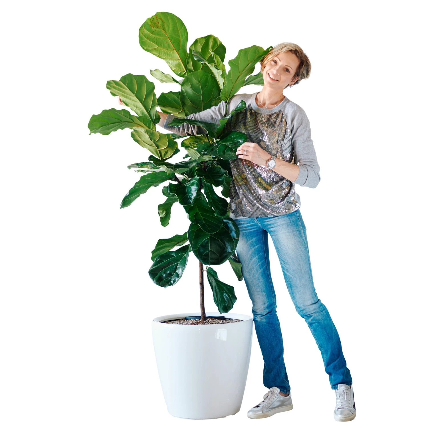 Ficus Lyrata’s, a.k.a. Fiddle Leaf Fig, large leaves shaped like violins and make this plant a dramatic accent, and number one plant choice to be photographed for interior and architectural magazines