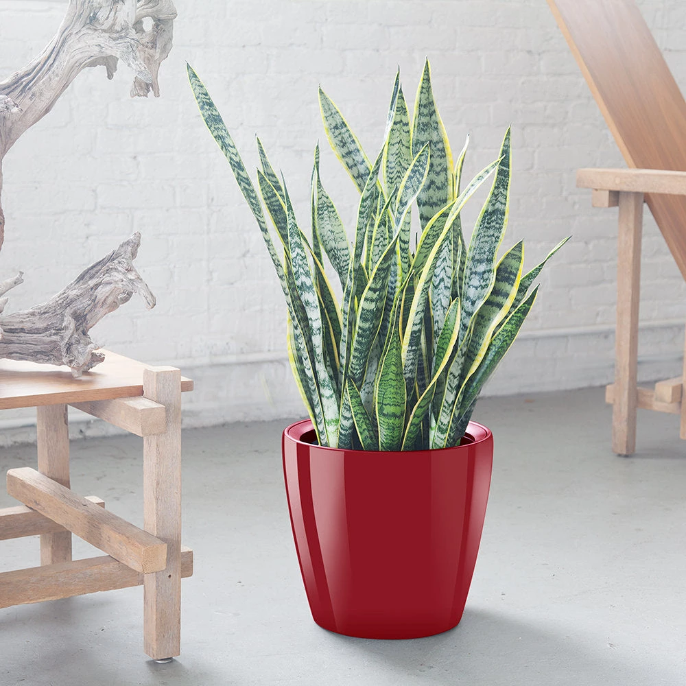 Hardy & easy to care for Sansevieria plant is potted in an elegant round 14″ Classico planter. #1 choice of a plant for an office! Great air purifier.