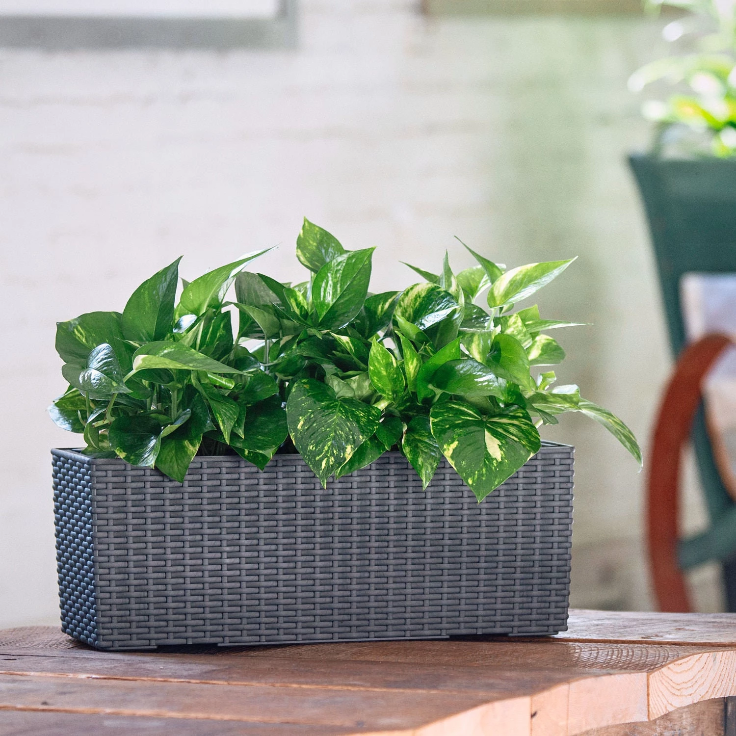 Pothos plant is very desired by many for its hanging habits and low maintenance. This arrangement is perfect for dressing up wide window ledges, shelves, or countertops.